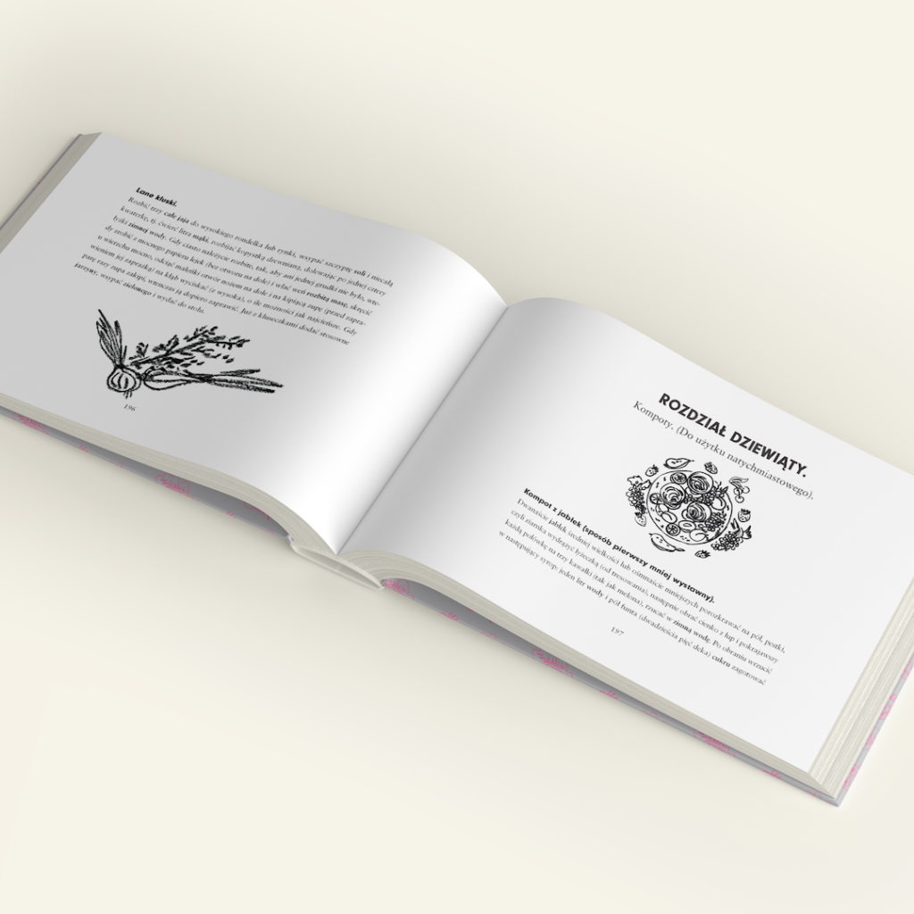 Moja wersja to w zasadzie wehikuł czasu – okienko, przez które możemy zajrzeć i poobserwować rzeczywistość sprzed ponad stu lat, która, ku zaskoczeniu, okazuje się wyjątkowo znajoma. Ta książka to swego rodzaju nić, którą starałam się połączyć te dwa wymiary czasowe, próbując wywołać u czytelnika tę samą miksturę emocji, która spotkała mnie, gdy natknęłam się po raz pierwszy na XX-wieczny zbiór. Studiowaniu przepisów towarzyszyła mi unikalna mieszanka odczuć: z jednej strony była to fascynacja rzeczywistością naszych pradziadków, obcą i tak mi odległą, że aż zabawną; z drugiej – poczucie swojskości, zrozumienia, zupełnie jak bycie w domu. Zadziwiające jest to, jak znajome okazuje się wszystko, co znajduje się w “Kuchni jarskiej” Czarnoty! Na jednej stronie zobaczymy składniki powszechnie używane, jak kartofle i ser, by zaraz natknąć się na produkty egzotyczne nawet obecnie (melony! soja!). Słownictwo, którego nikt nie słyszał w użyciu od dziesiątek lat, potrzebujące własnego słownika, opisuje potrawy z naszego dzieciństwa, jak naleśniki z serem czy gołąbki z kapusty. – pisze pomysłodawczyni i twórczyni koncepcji graficznej reedycji, Aleksandra Sadownik.